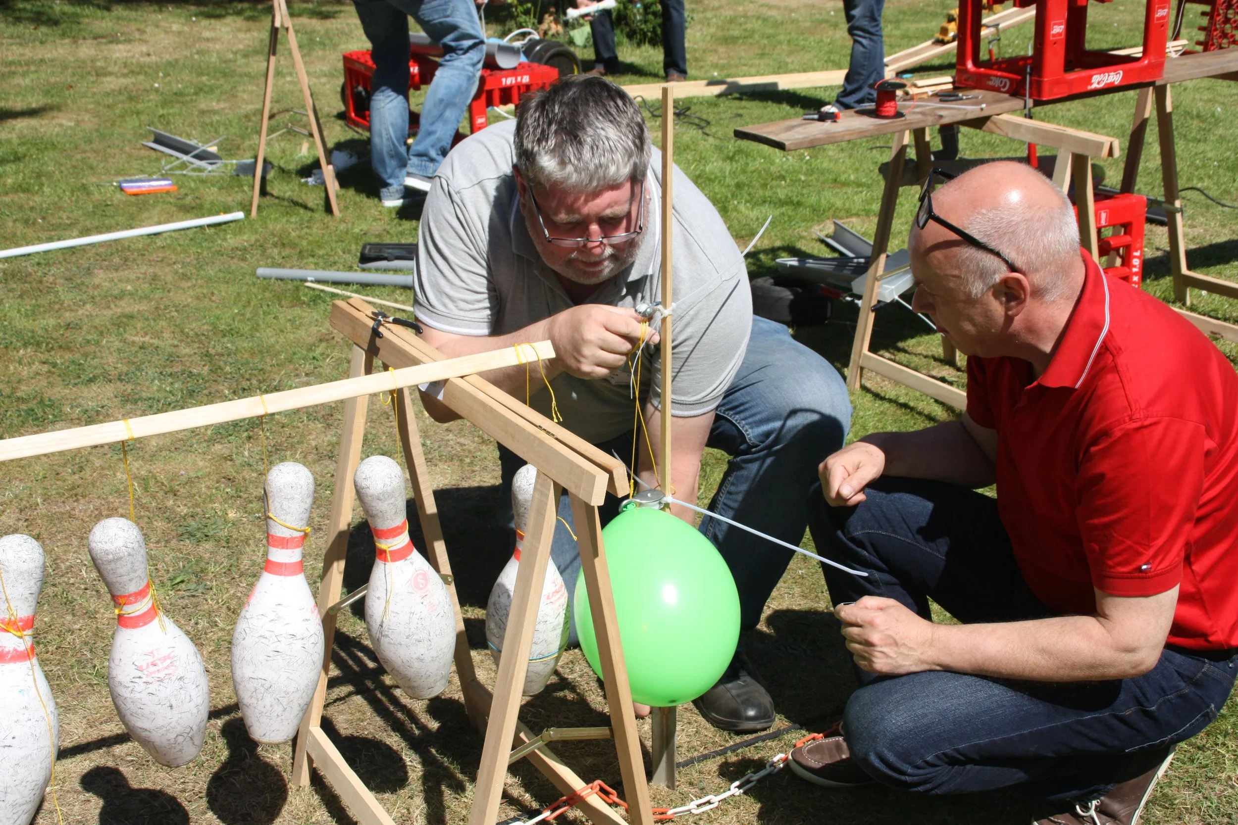 Die Teilnehmenden entwickeln in Kleingruppen einzelne Stationen einer komplexen Kettenreaktion, die nur funktioniert, wenn alle Elemente präzise aufeinander abgestimmt sind. Aus über 200 verschiedenen Materialien entstehen kreative Konstruktionen, die durch einen einzigen Startimpuls nacheinander ausgelöst werden. Der besondere Lerneffekt entsteht an den Schnittstellen: Hier müssen die Teams exakt kommunizieren und zusammenarbeiten – eine Parallele zu Arbeitsprozessen in Unternehmen und Ausbildung.